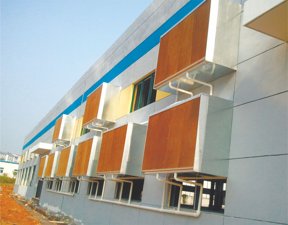 ◆主要材料介紹:水簾降溫工程利用和環(huán)??照{(diào)相同的降溫原理,將水簾和負(fù)壓風(fēng)機(jī)完美結(jié)合利用。其利用的蒸發(fā)器同樣是直接蒸發(fā)式換熱器“多層波纖維疊合物”水簾是瑞典的專(zhuān)利產(chǎn)品,是經(jīng)特殊處理的7090型“波紋纖維紙疊合物‘,有良好的吸水性能和通風(fēng)性能;耐水浸泡不變型;耐腐蝕,正常使用壽命可超過(guò)5年。由于其利用水簾面積比環(huán)保空調(diào)大,所以其降溫效果要好于環(huán)??照{(diào),可以達(dá)到4-13℃的降溫幅度。和環(huán)??照{(diào)降溫工程的不同點(diǎn)是水簾降溫是針對(duì)某個(gè)完整且相對(duì)封閉的區(qū)域,且在水簾厚度方面有100mm和150mm供選擇。